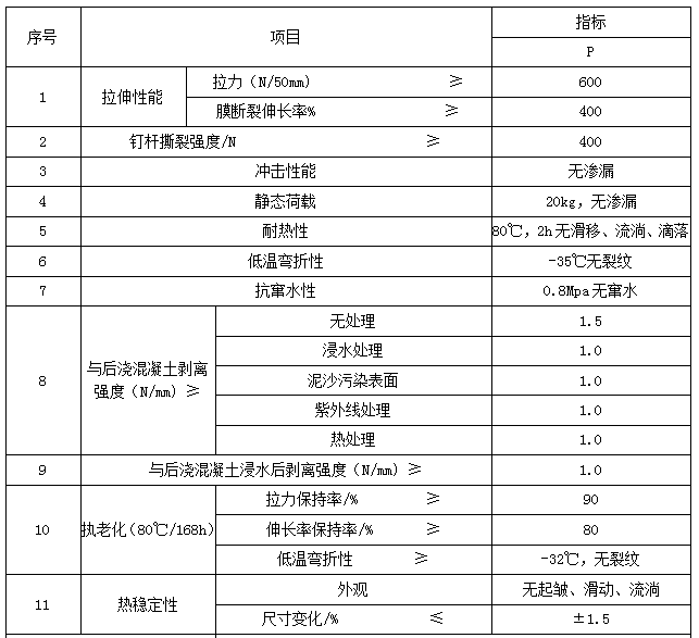 5、适用于地下与隧道工程的预铺反粘防水工程,具有防水层施工完成后无需保护层直接绑扎钢筋浇灌混凝土的抗冲击性能。
